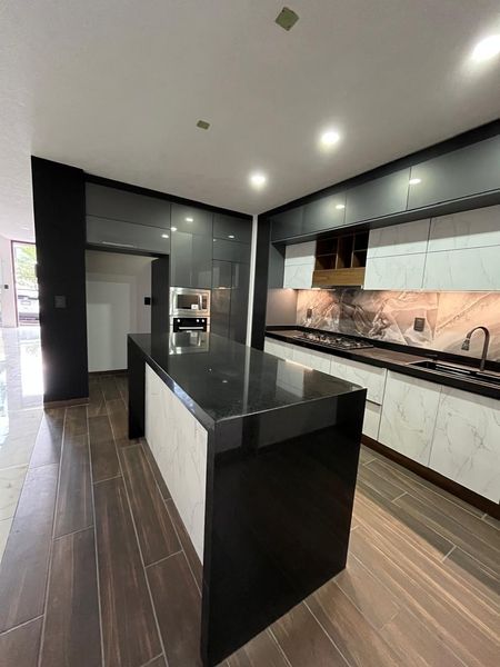 Cocina con isla equipada. Parrilla , horno de gas y microondas