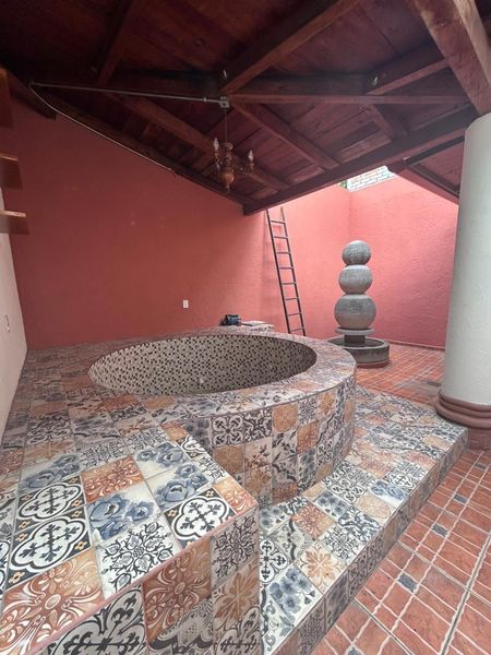 Terraza con fuente y jacuzzi de hidromasaje