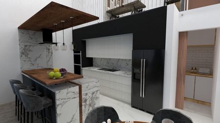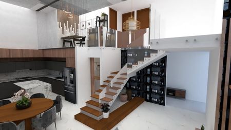 Los penthouse se ubican en el quinto nivel del proyecto, planta baja recámara principal con vestidor y baño completo, sala, comedo, cocina totalmente equipada, medio baño, cuarto de visitas, cuarto de servicio, cantina y terraza.